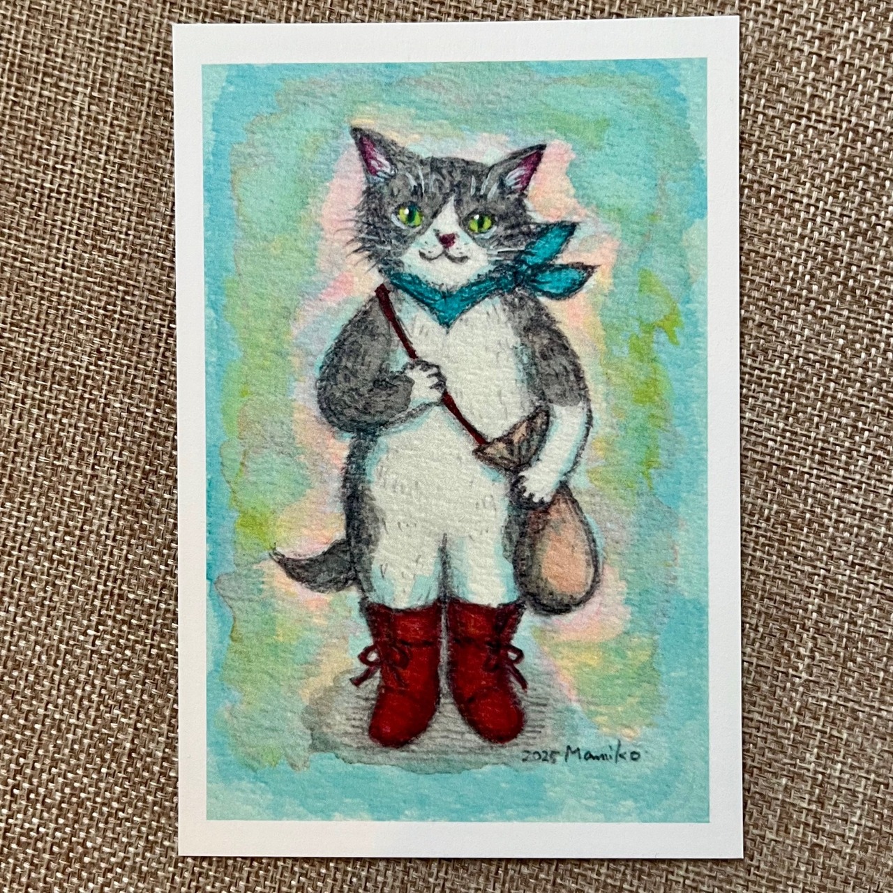 シャルル・ペロー作『長靴をはいた猫』より、ブーツをはいて二足歩行になって森へ出かけていくところ。