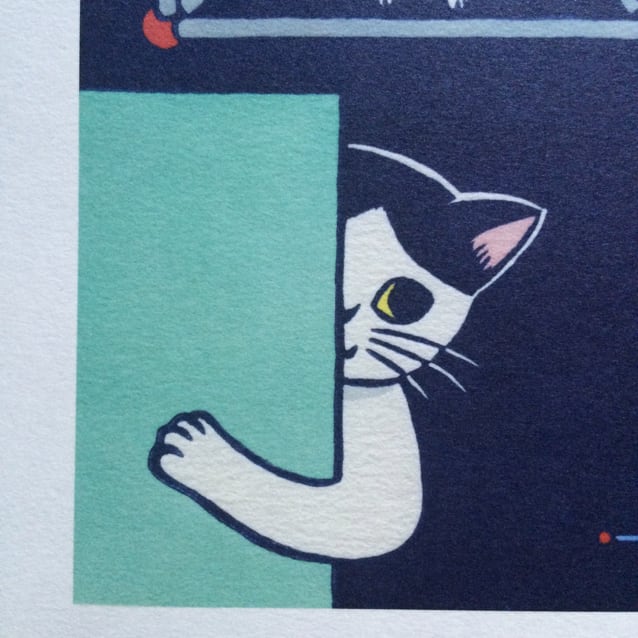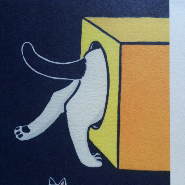 一次元(点から線)、二次元(平面)、三次元(立体)、四次元の図に猫を絡めました。